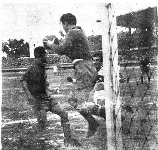 turgay'ın büyük iş düşmemekle beraber, fevkalâde suples yaparak kornere çıkardığı şütle; bizim müdafilerin arasından ve üç metreden karışıklıktan gelen topu ani olarak bloke etmesi lehine kaydedilecek güzel hareketlerdi.